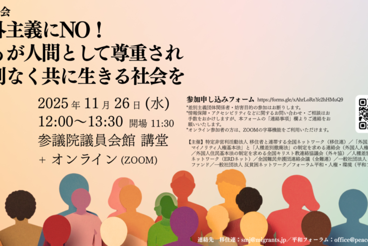 院内集会「排外主義にNO! 誰もが人間として尊重され差別なく共に生きる社会を」のご案内